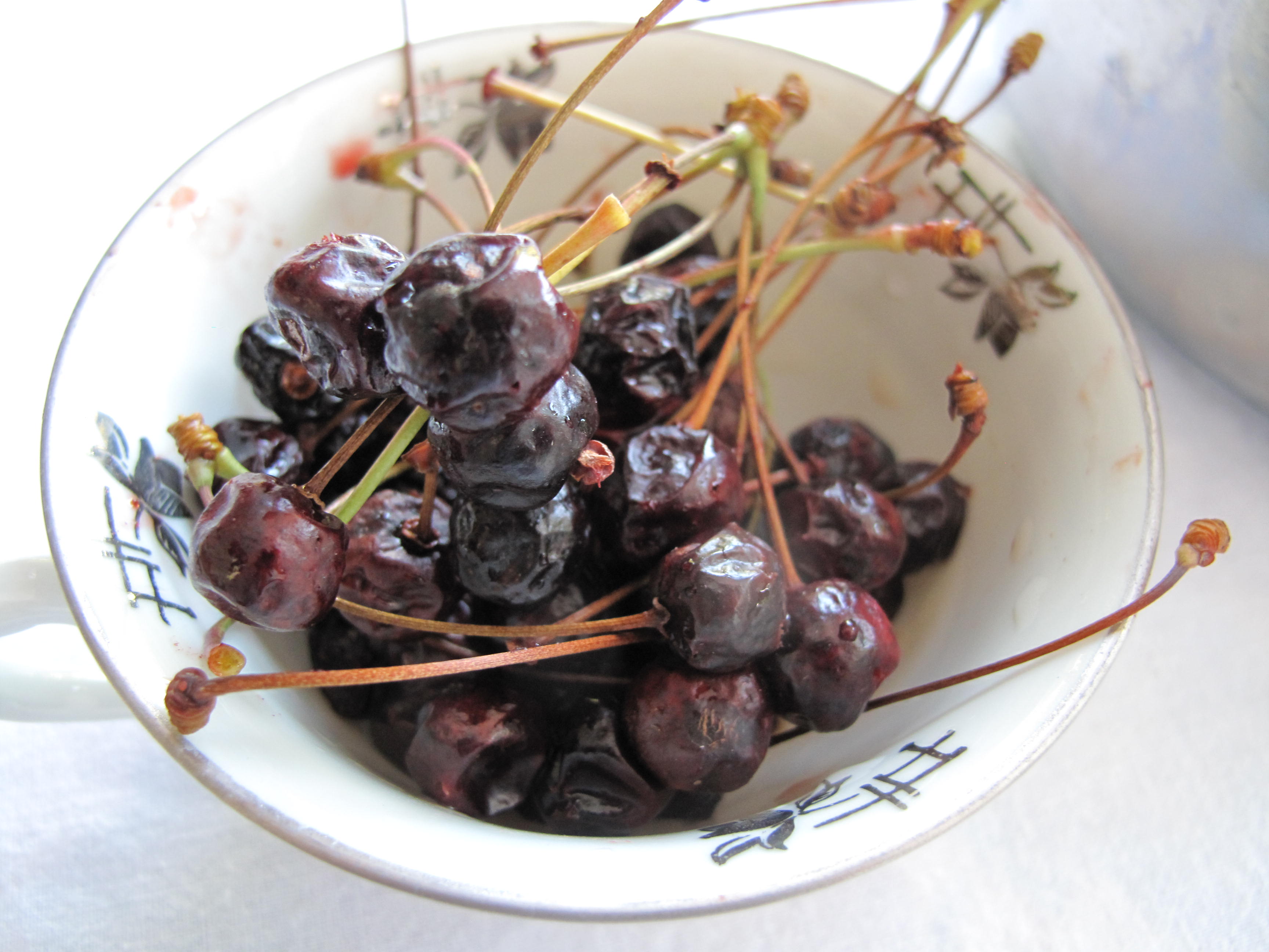 Almost all the chutney I make ends up looking a dark brownish black, mainly because it is made with dark fruit and/or dark brown sugar. There’s nothing wrong with that, but it does mean that even though the different versions might taste different, they do all tend to look the same. This time, I was holiday just at the moment of an apricot glut, and I knew I wanted to somehow make sure I didn’t lose that rich orange glow. I couldn’t resist adding some tiny wild bird cherries I’d found drying on the ground under an old tree, and crossed my fingers that their dark red wouldn’t bleed out into the rest of the mixture. The gamble paid off. Besides showcasing a fruit I love, the apricot, this chutney also makes a nice change on the colour front: it’s a gorgeous deep orange, and tastes just as good as it looks.