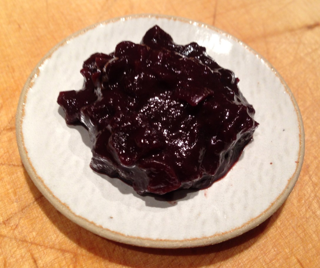 Place the blackberries, apple and onion in a medium sized pan, cover, heat and cook gently for about 45-60 minutes, until a large amount of juice has been released and the apple and onion is soft and pulpy. Press the mixture through a sieve (not too fine) into a large preserving pan, getting as much through as possible but leaving the blackberry pips behind. Add all of the other ingredients to this puree and gently bring up to a boil, stirring often to ensure that the sugar is fully dissolved. Simmer steadily for about 20 minutes or until thickened and ready to bottle – it doesn’t take so long as some other chutneys as the fruit is already cooked. Spoon into sterilised jars*, seal well, cool, label and store in a dark cupboard for one month before using.