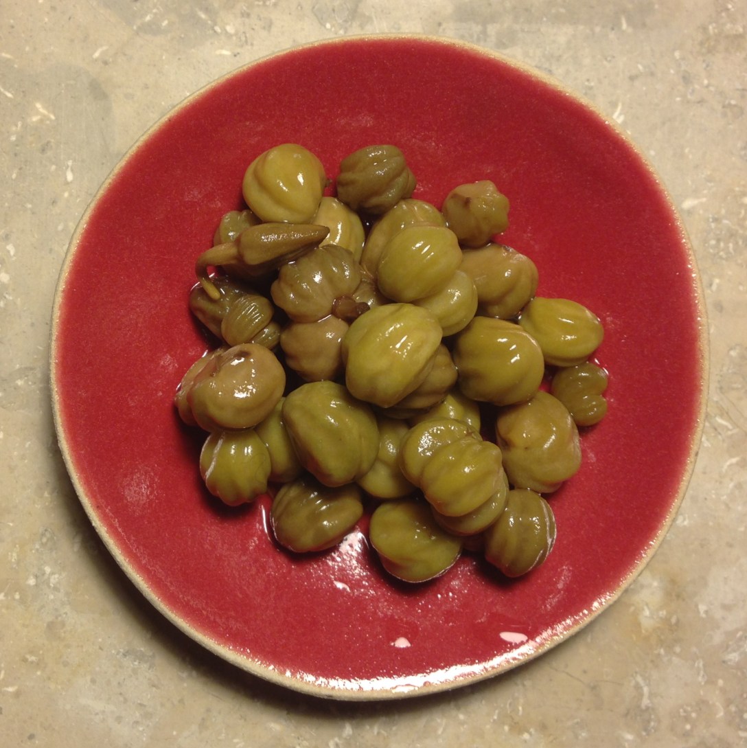 The flowers are edible, and look lovely in a salad as well as adding a hint of pepperiness, though they produce so many blossoms it’s hard to eat them all. But these are not all lost to the kitchen! For almost every flower you leave to wither on the plant, you’ll get a seed. These start out green, and dry to a whitish yellow. There are always far more than I want to plant for next year, so I was intrigued to hear about the idea that they could make an imitation caper. I love capers, and I love the spicy flavour of nasturtium flowers. This had to be a winner.