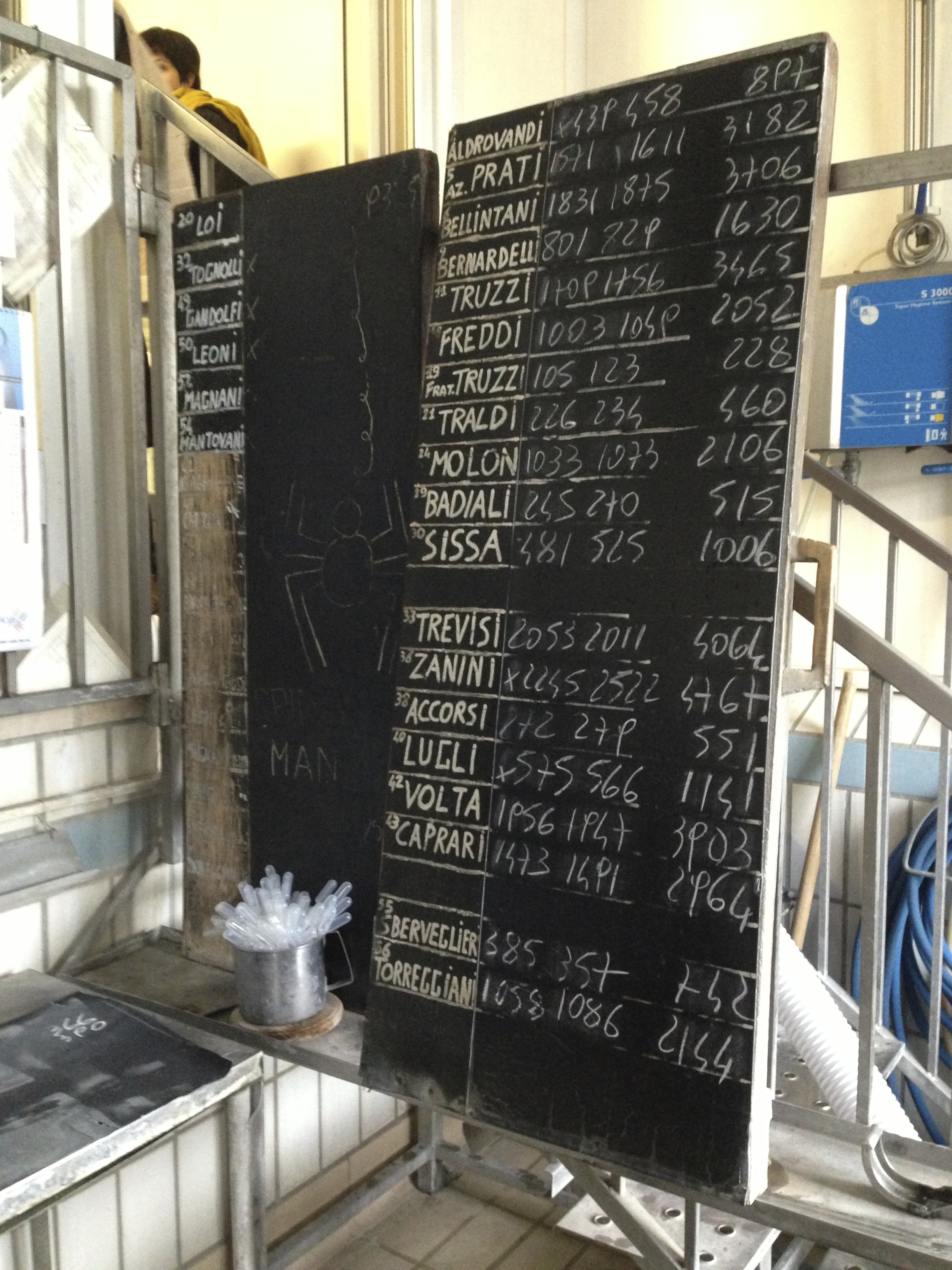 * We were told that the milk is one of the (many) differences between parmesan and grana padano: although it’s only a few hundred metres away, apparently their cows eat silage, which changes the composition of the milk. I have to say that in the course of a whole day in the area we didn’t see a single cow!