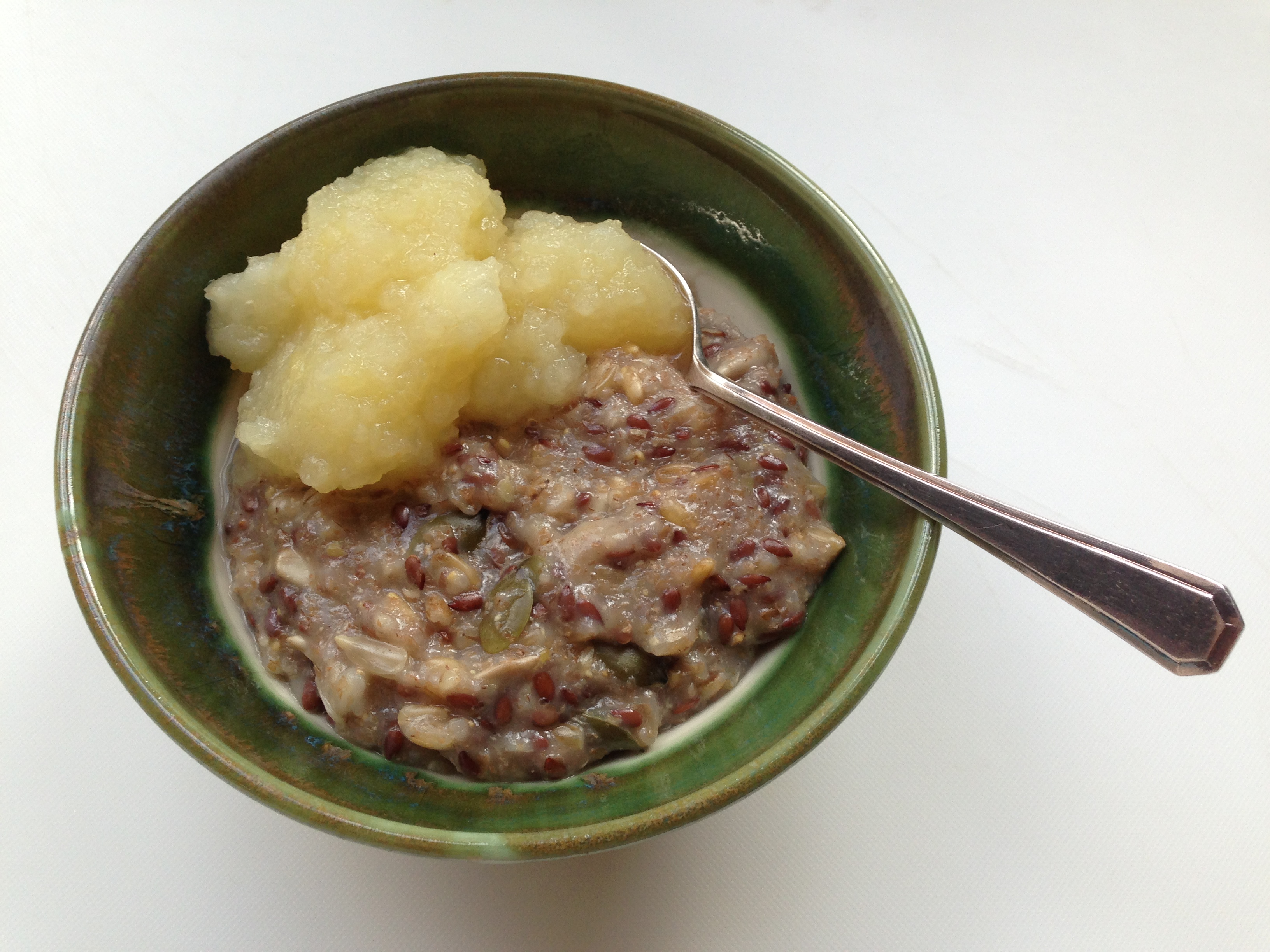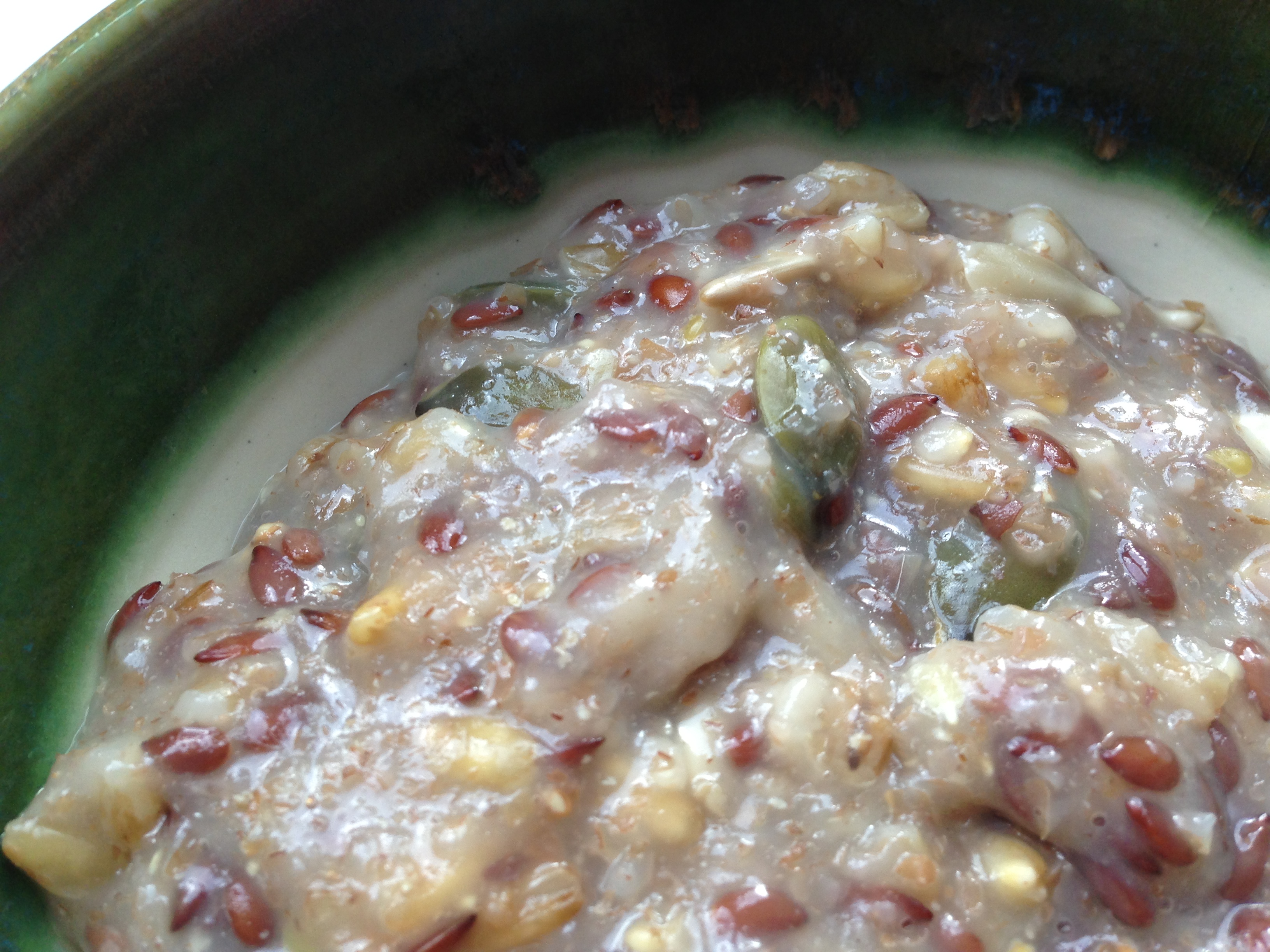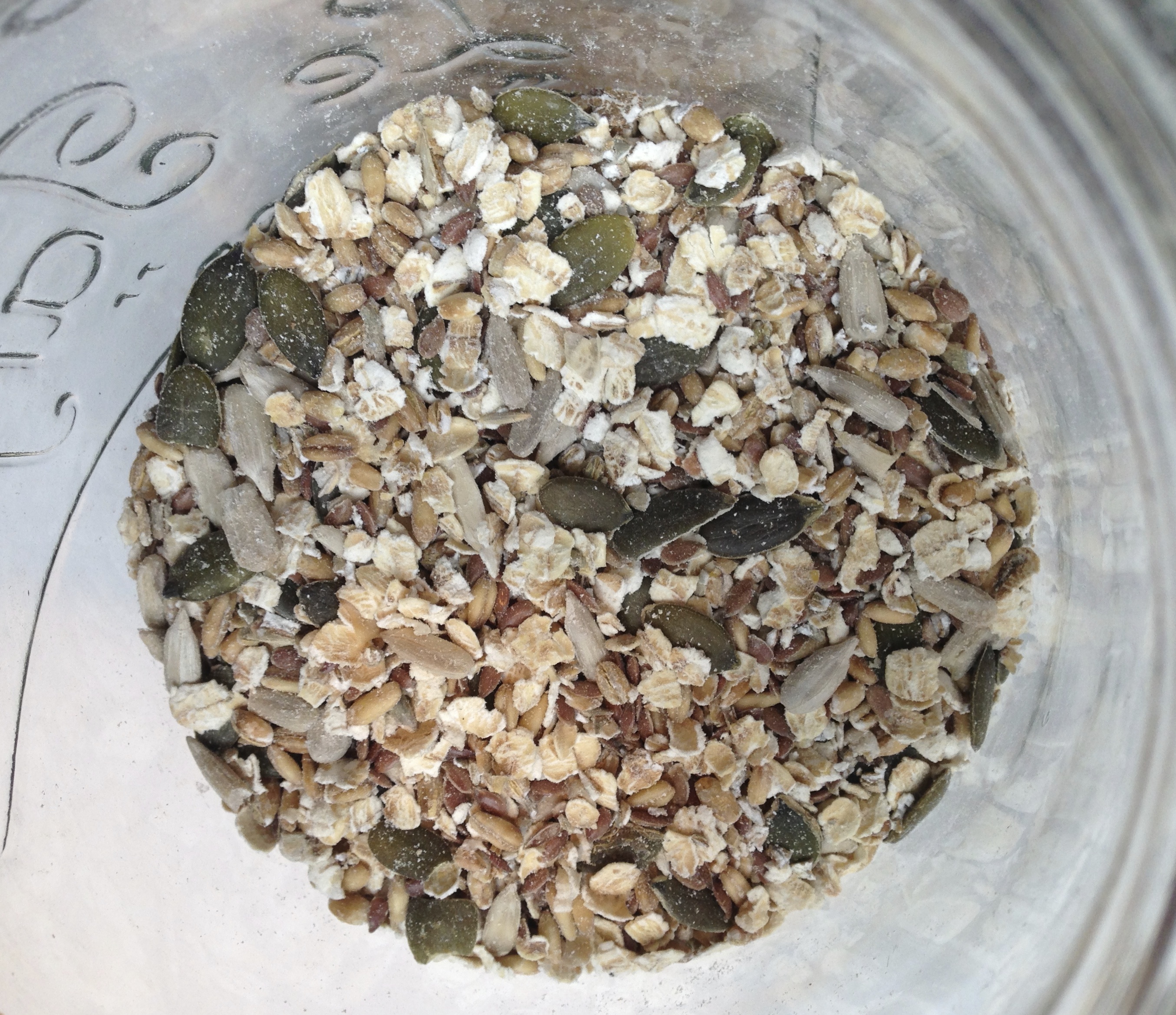 I find it really hard to change my morning habits. It’s hard enough to get up, make the coffee and get anything at all into a bowl or onto a plate. But this mix is definitely worth the effort, and the great thing is that all the hard work is done well in advance, at a time of day more conducive to such things. The end result is quite delicious – and with all those seeds it just has to be really, really good for you too.